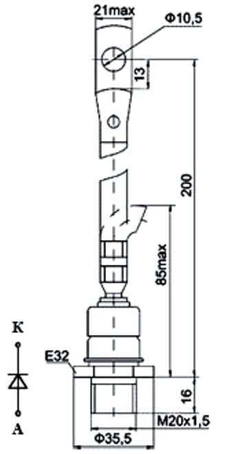 Предназначен для работы в цепях статических преобразователей электроэнергии постоянного и переменного токов на частотах до 2 кГц.
