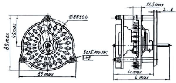 ПЩ-12П1Н2А переключатель щеточный применяется для коммутации электрических  цепей постоянного и переменного тока в радиоэлектронной аппаратуре. Климатическое исполнение В, УХЛ.