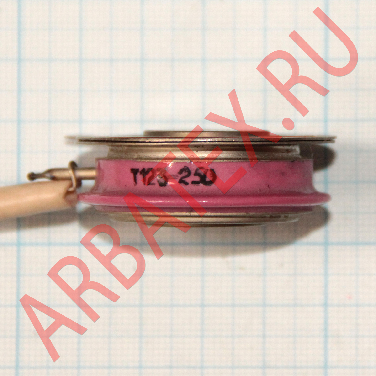 Т123-250-12 - низкочастотный тиристор таблеточного исполнения. Предназначен для работы в преобразовательных устройствах, в цепях постоянного и переменного тока различных силовых установок.