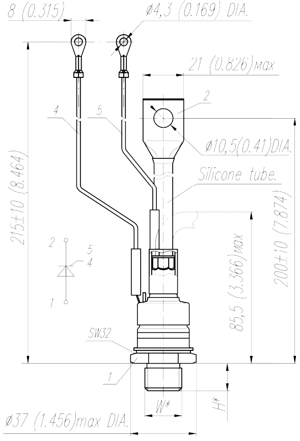 Масса тиристора не более 6 г.
