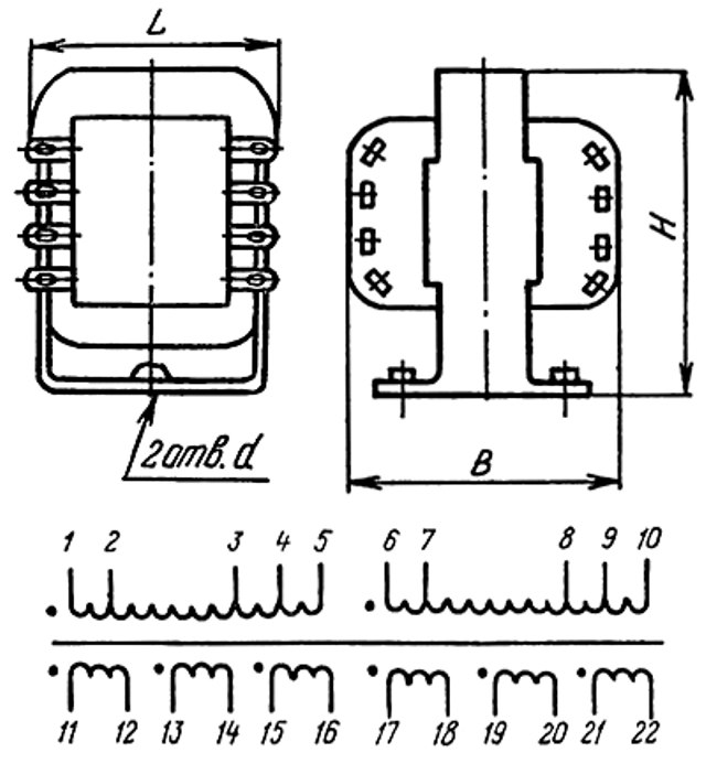 • Напряжение вторичной обмотки: