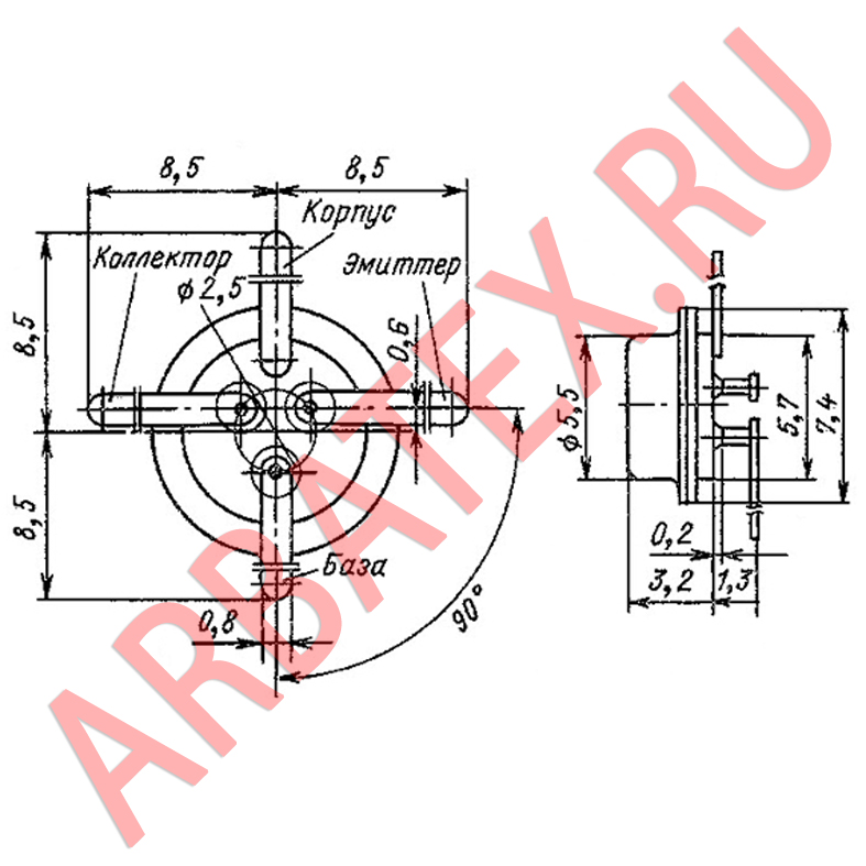 Обозначение типа приводится на крышке корпуса транзистора.